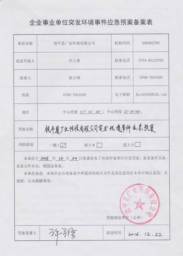 1、單位名稱: 饒平縣廣業(yè)環(huán)保有限公司